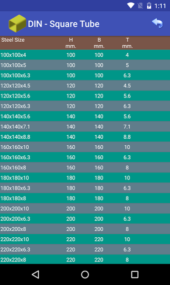 Çelik Tablo uygulaması, çelik levhaların, plakaların, çubukların ve boruların boyutlarını ölçmek için bir Android uygulamasıdır. Hem tasarımcılar hem de mühendisler için bir araçtır ve bir inşaat projesi için teklif belgeleri hazırlamak için yazılım paketinin önemli bir parçasıdır.